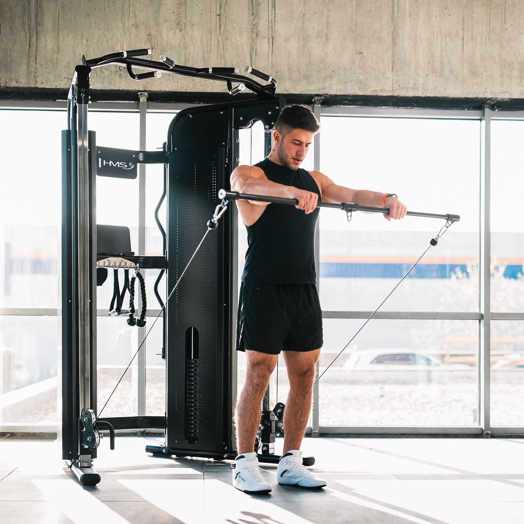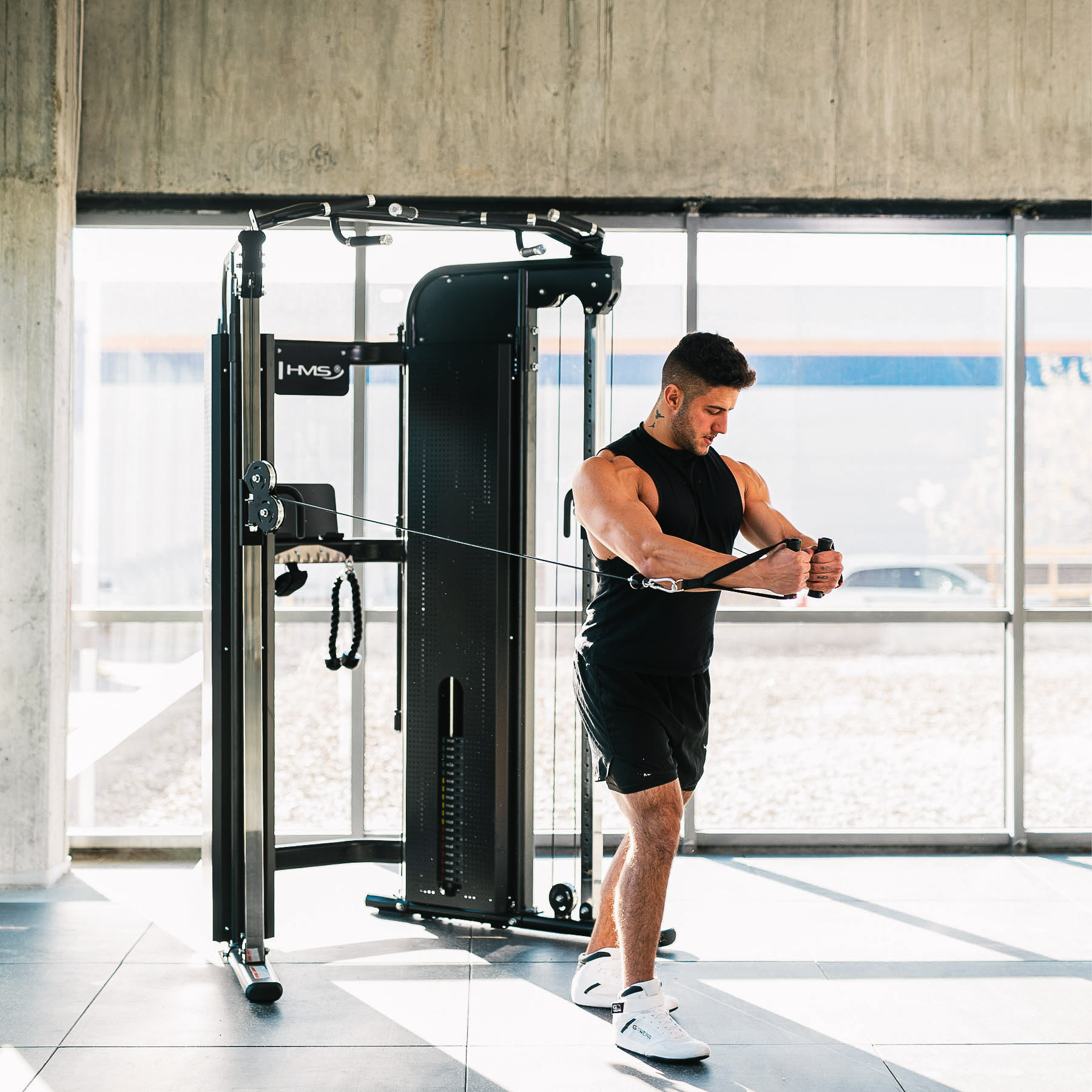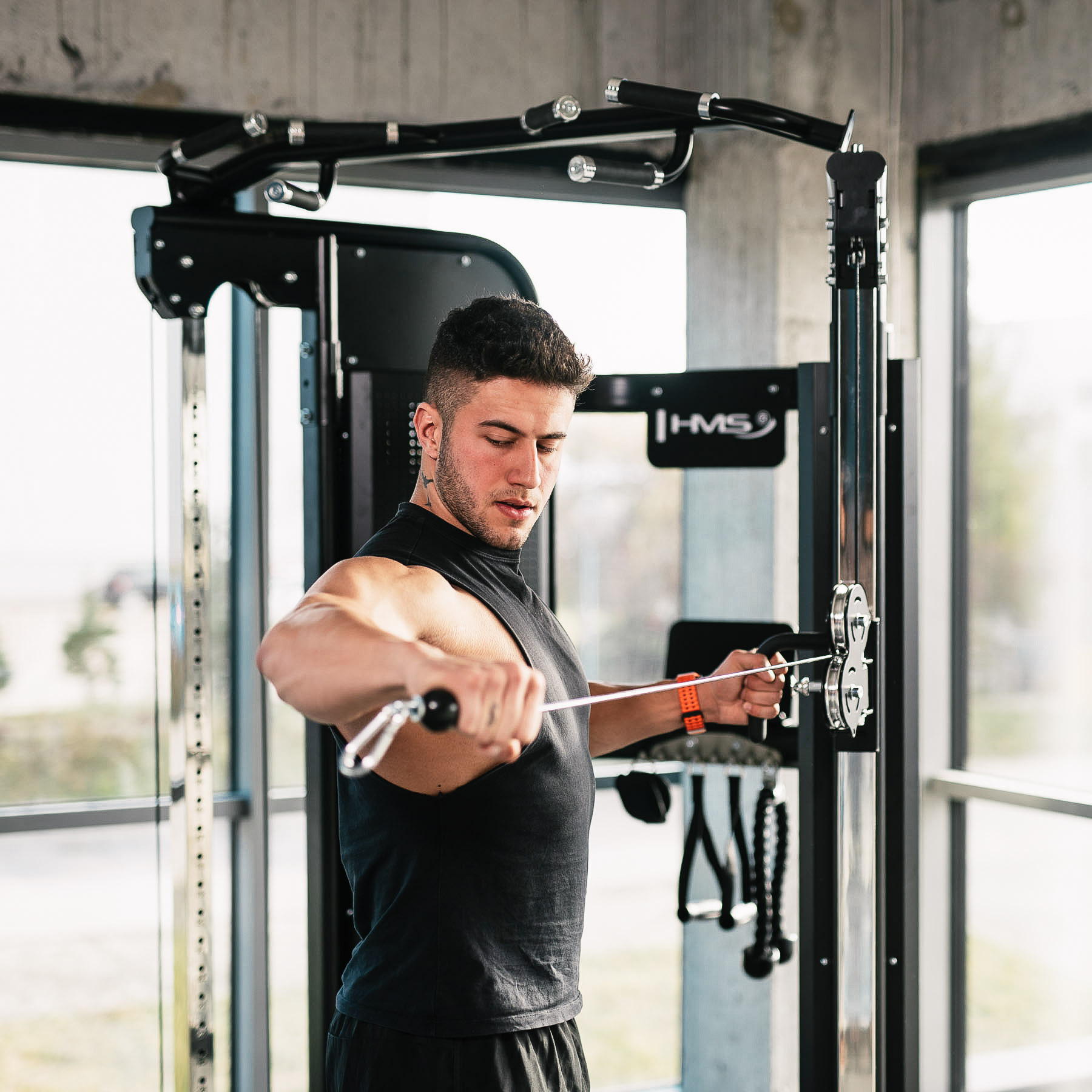 Urządzenie umożliwia wykonanie dziesiątek ćwiczeń – od klasycznych ruchów siłowych po trening funkcjonalny i stabilizacyjny. Płynna regulacja wysokości bloczków (system 180°) oraz czytelna numeracja na stalowych prowadnicach pozwalają na szybkie dopasowanie ustawień do wzrostu i rodzaju ćwiczenia. Dzięki temu sprzęt świetnie sprawdzi się w treningu całego ciała: pleców, klatki piersiowej, barków, ramion, nóg oraz mięśni głębokich.