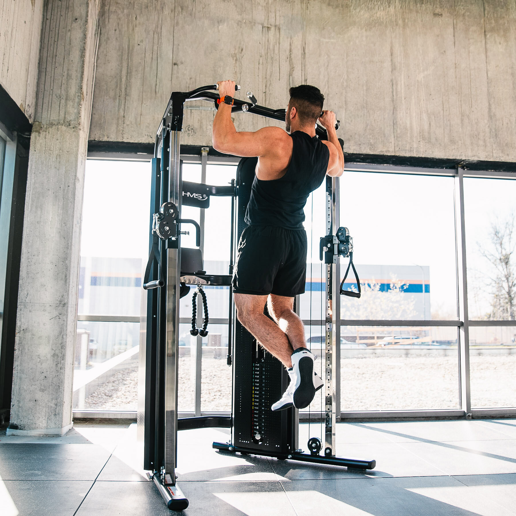 Zintegrowany drążek multi-grip oferuje liczne możliwości chwytu: wąski, szeroki, neutralny, podchwyt/ nachwyt, chwyt równoległy, chwyt mieszany i podciąganie jednorącz. Dzięki temu ARES PRO zastępuje komplet akcesoriów i stacji, oszczędzając miejsce w klubie lub domowej siłowni.