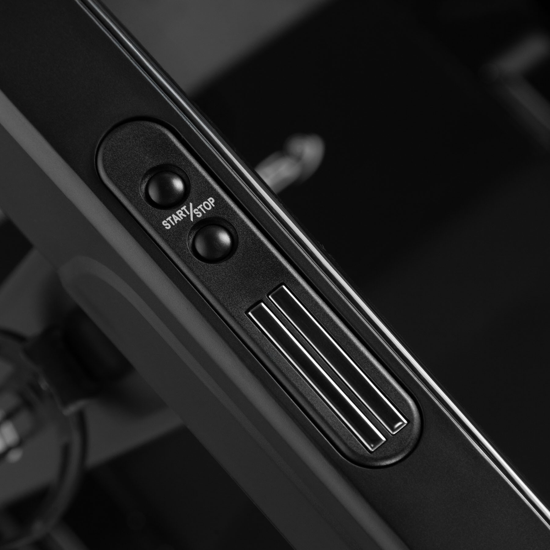 Model BE5872N zaprojektowano z myślą o wygodzie użytkownika. Sterowanie prędkością oraz przycisk Start/Stop umieszczone na kierownicy pozwalają na szybką i intuicyjną obsługę bez przerywania treningu. Zakres prędkości od 1 do 16 km/h sprawdzi się zarówno podczas spokojnych spacerów, jak i intensywnych biegów. Bieżnia posiada 3 poziomy manualnej regulacji nachylenia, co umożliwia zwiększenie intensywności ćwiczeń i lepsze zaangażowanie mięśni.