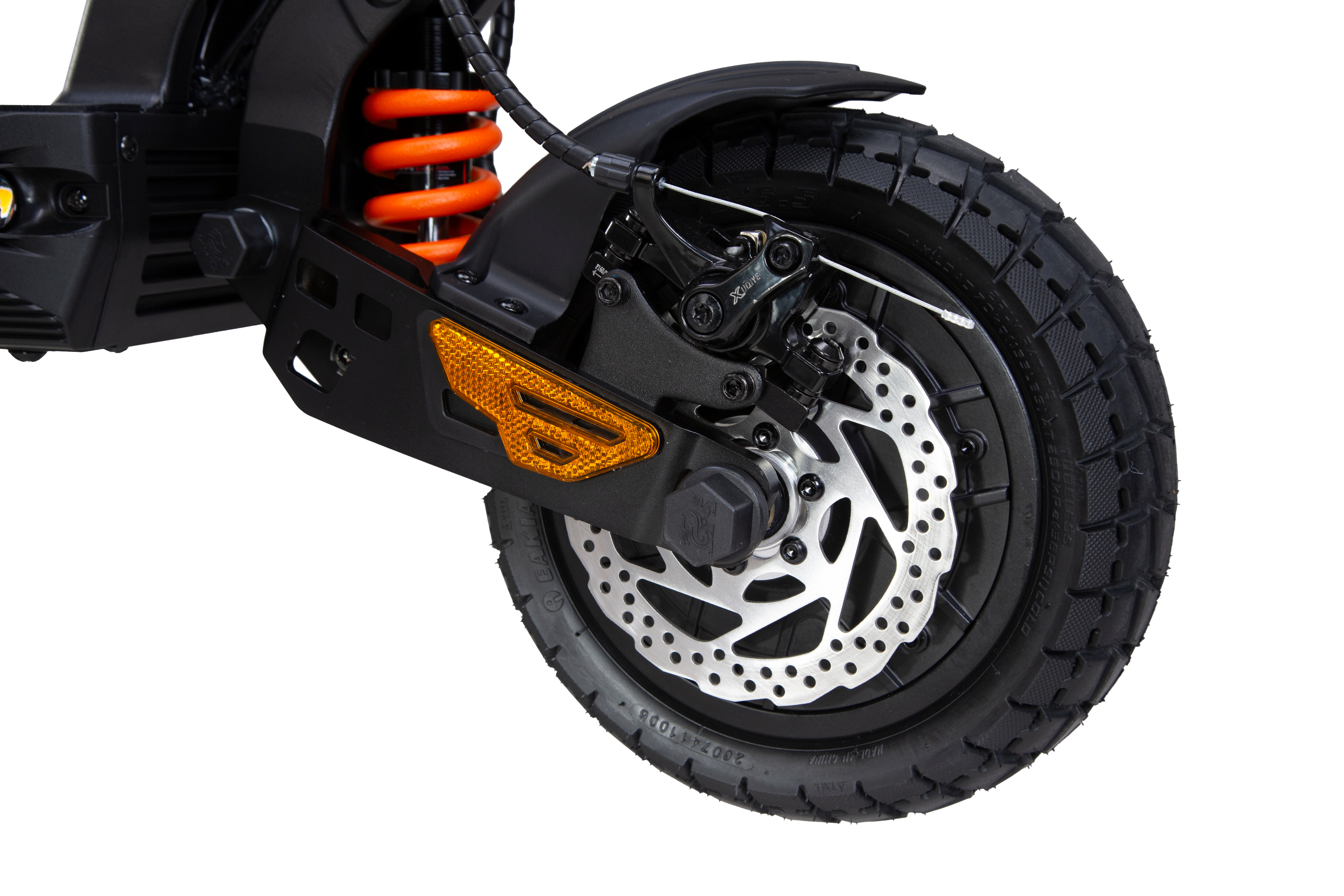 G2 Master posiada przedni i tylny hamulec tarczowy, które oferują:✔ mocne i pewne hamowanie,✔ efektywne odprowadzanie ciepła (brak spadku skuteczności),✔ krótką drogę hamowania nawet przy 60 km/h.