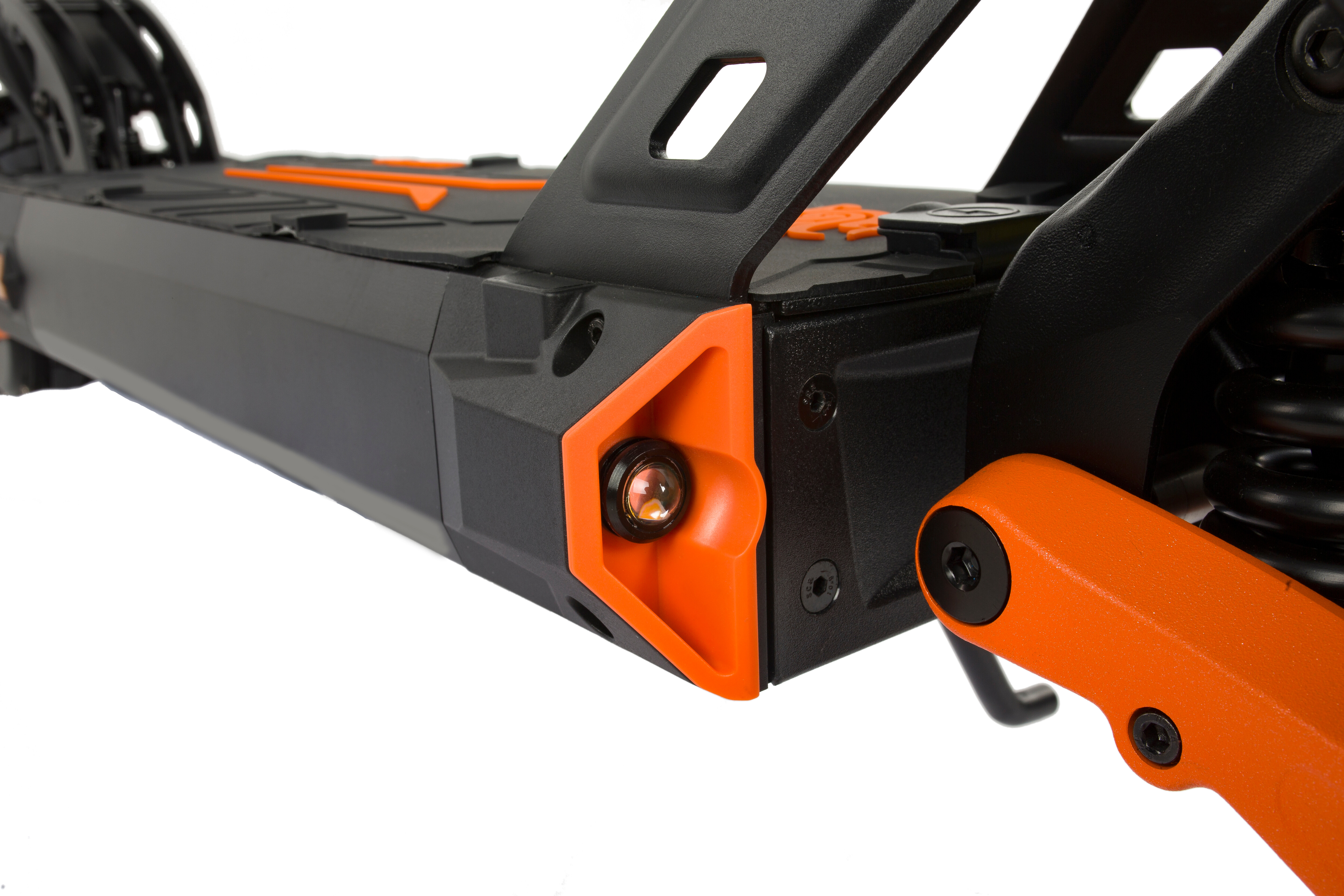 Oświetlenie obejmuje:✔ mocną lampę przednią 45° (obszar oświetlenia 44 m²),✔ tylne światło hamowania – błyska automatycznie, zwiększając Twoją widoczność.