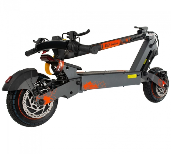 Za komfort i pełną kontrolę odpowiada przednie i tylne zawieszenie, 10-calowe opony próżniowe oraz potrójny system hamulcowy, gwarantujące stabilną jazdę w każdych warunkach.