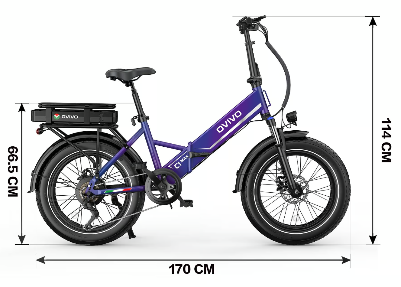 ✅Rower elektryczny OVIVO C1 MAX DUAL BATTERY to komfortowy i wydajny model stworzony z myślą o długich trasach – oferuje zasięg nawet do 140 km. Wyposażony w szerokie, odporne na przebicie opony 20″ x 4″ zapewnia doskonałą przyczepność i stabilność w każdych warunkach.