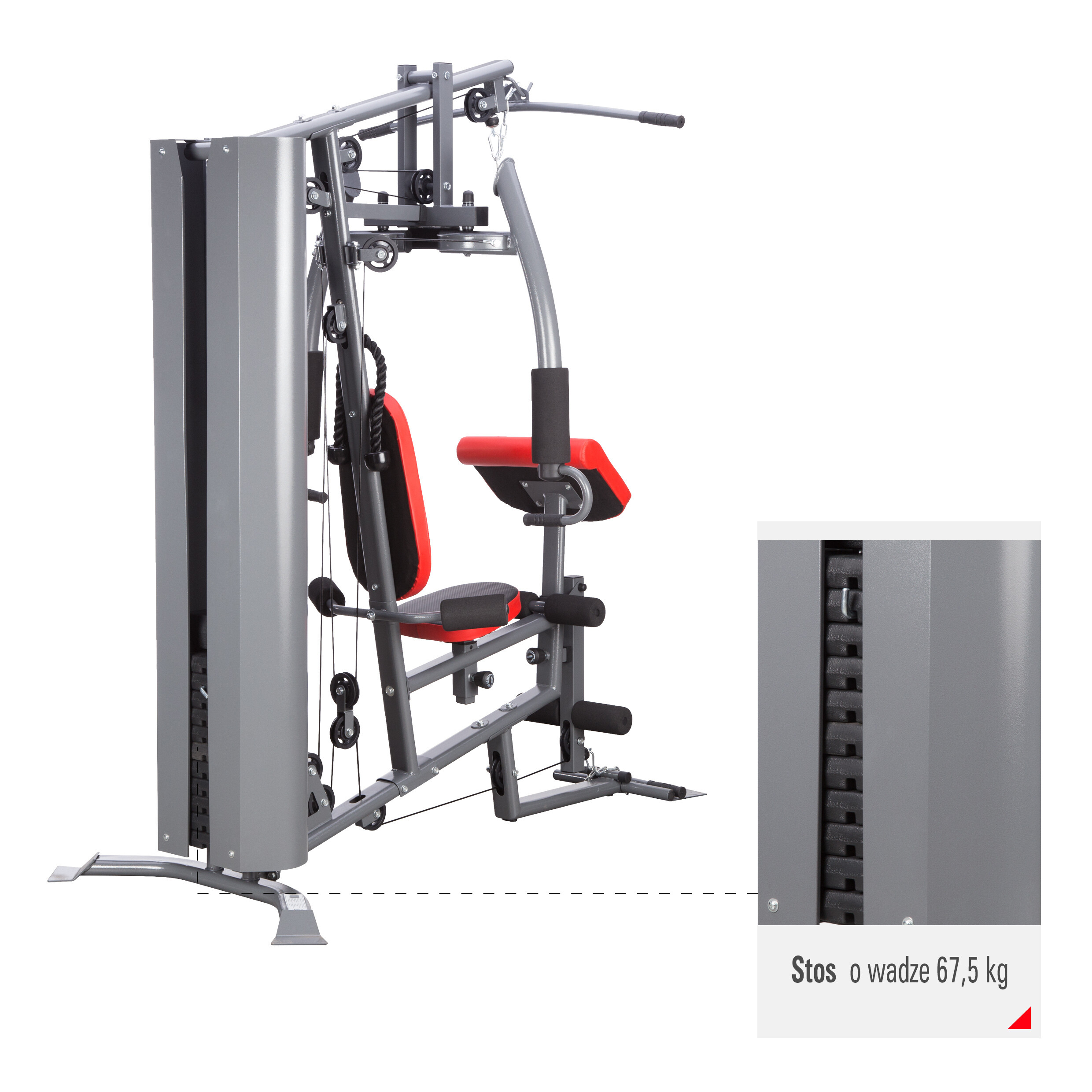 TYTAN 7 HMS to profesjonalny przyrząd do ćwiczeń w warunkach domowych. Jest to idealne rozwiązanie dla każdego, kto chce poprawić swoją kondycję oraz sylwetkę. Sprzęt pozwala na kształtowanie wszystkich grup mięśni: najszerszych grzbietu, piersiowych, trapezowych, posturalnych, pośladków, przedramion, naramiennych, tricepsu, pozwala również na ćwiczenie nóg.
