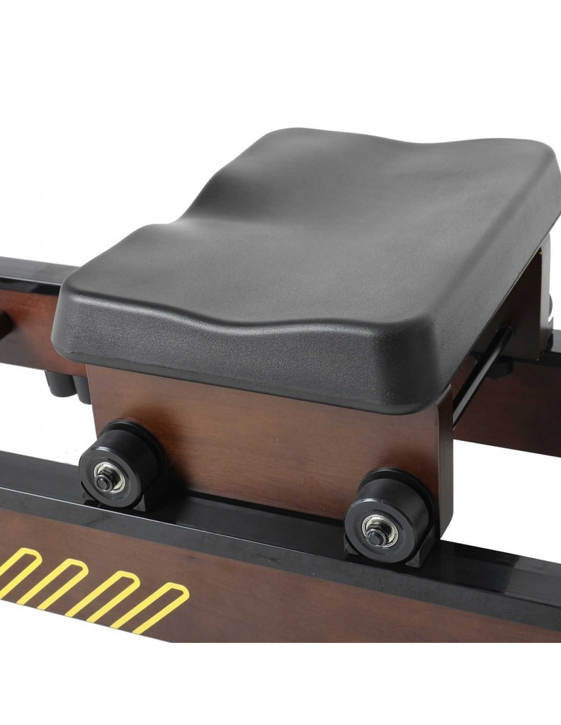 LEKKI I WYTRZYMAŁY. Wioślarz ten, ważący zaledwie 24 kg i wykończony w eleganckim kolorze orzecha, łączy w sobie lekkość i trwałość. Uzupełnieniem drewna jesionu amerykańskiego o grubości 25 mm są stalowe elementy, zapewniające trwałość i stabilność podczas treningu.